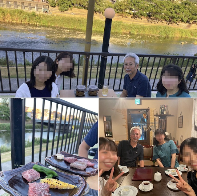 - 8/12 昨日、娘二人が帰ってきた、昨夜は近所のシェモモで食事。今日の午後は買い物に付き合い、木屋町の竹島の床で食事。久方ぶりに家族が揃い、夕刻の川風を感じながら料理とお酒を楽しんだ。