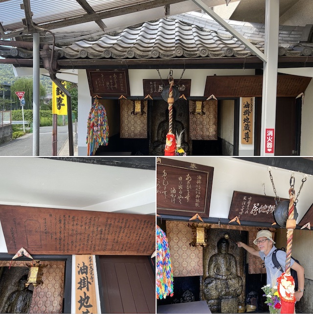 - 8/27 広沢池に鳥見に行きすがら、寄り道して嵯峨野の油掛地蔵尊に立ち寄った。油をかけて拝むという珍しい石仏で、地蔵とはなっているが、阿弥陀如来とのこと。自分たちの前と後にも参拝者がいて、そこそこ御参りに来る人もいるようであった。由緒書きを読むと700年以上前の鎌倉時代の仏像ということで、うやうやしく油をかけさせていただいた。ただ、残念なことに鳥見の方はさしたる成果なし。カメラ目線での油掛けに、心がこもっていなかったと仏さまには判断されたかな。