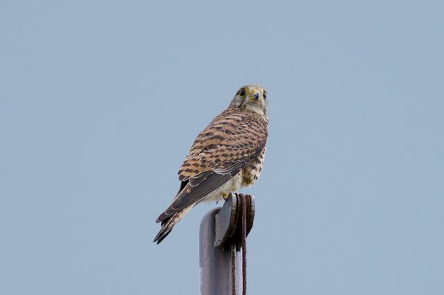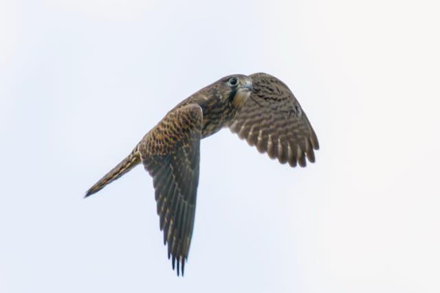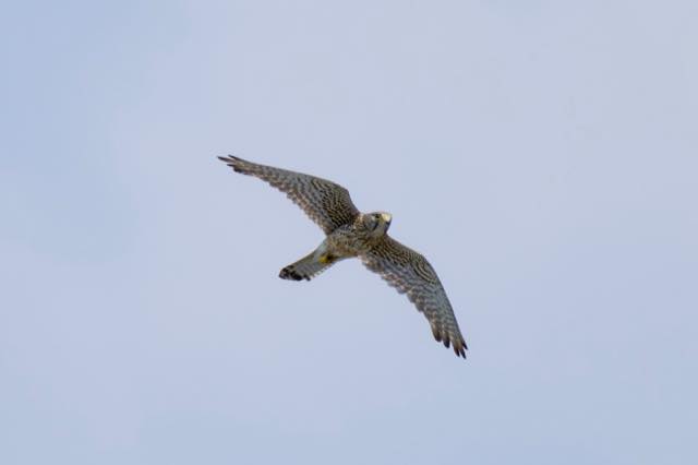 チョウゲンボウの巣立ちの様子を見にいった。4羽が巣の周辺を飛び交い、2羽がまだ巣立ちできていなかった。