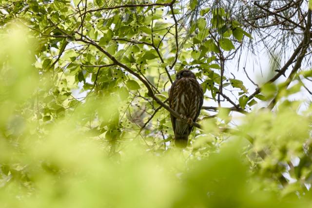 アオバズクを見に行くも暑すぎた。2箇所で見ることができたがいずれもおやすみ中であった。