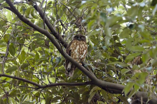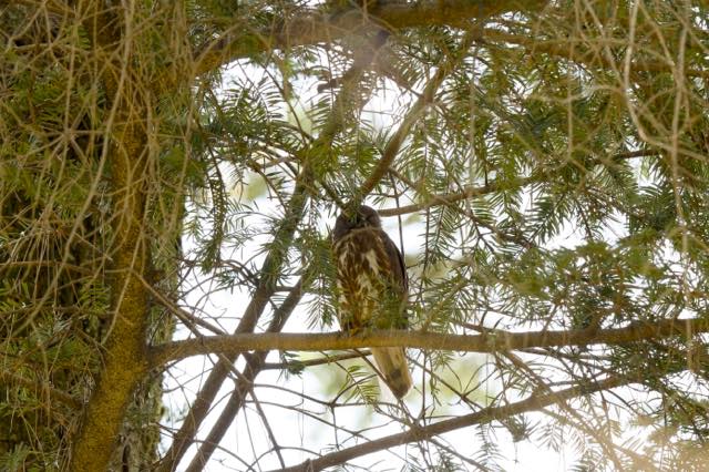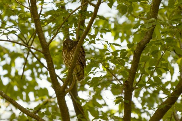 祇園祭も近づいて、そろそろアオバズクの雛が顔を出すころかなということで出向いていた。雛は出ていなかったが、宗像神社、鷹司邸、バードバス西、いずれの場所でもアオバズクのお父さんを見ることができた。いずれも夜勤明けで眠たそうだった。