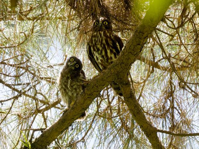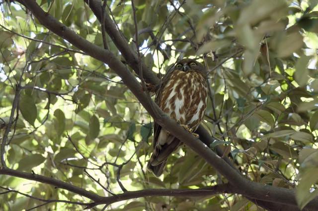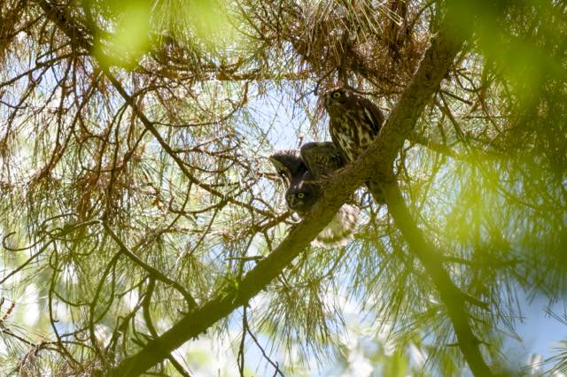 祇園祭も前祭が終わり、そろそろアオバズクも雛が巣立ちをする時期。宗像神社、鷹司のアオバズクはまだであったが、バードバス西では親子が出ていた。