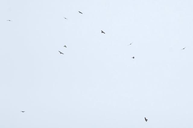 場所:猪子山 天気:曇り一時雨 撮影機材: Nikon Z50II + NIKKOR Z 180-600mm f/5.6-6.3 VR 一昨日に次いで猪子山へ。昨日、600羽という話を聞いていてもたってもいられずやってきた。初めて本格的なタカ柱を見ることができたし、また関西ではなかなか遭遇する機会がないツミが近くに来て大興奮した。今日は2000羽以上飛んだことになっているが、多くは高くて遠いところを「流れて」いき、貧弱な双眼鏡では良く見えず。普段の鳥見ではあまり双眼鏡は使わないので高機能なのを欲しいとも思わないが、渡りの時だけは別かな。 ![]() タカ柱 ![]() ハチクマ ![]() サシバ幼鳥か。 ![]() ノスリ ![]() ツミ ![]() ツミ |