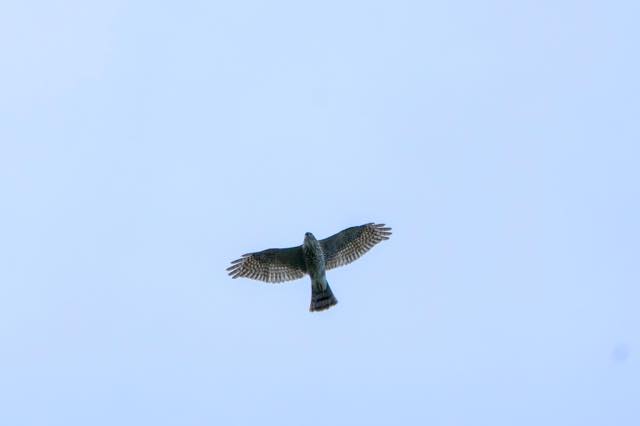今週3度めの渡り観察。多くは高く、遠くを飛んでいたが、時折近くを雄飛していくのもあり、われわれを楽しませてくれた。主役はハチクマ、サシバから徐々にノスリにかわってきたようだ。途中、チョウゲンボ2羽が近くで争いはじめ、渡りが途切れた間を楽しませてくれた。