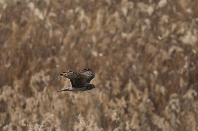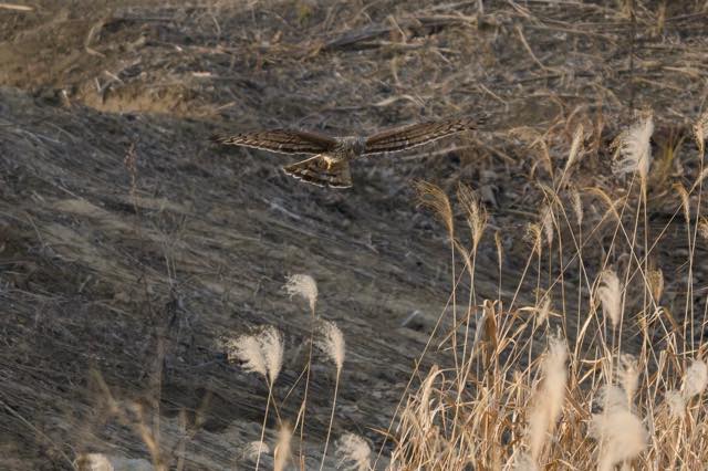 昨日が失敗だったのでハイイロチュウヒの塒入り再戦。4時半頃が勝負やと思っていたら、4時前に突然現われて、大慌て。狩りの途中だったようで、1往復して飛びさった。逆に塒入りの時間になっても帰ってこず。暗くなったので、塒入りは諦めて帰路に。チャンスは2度来なかった。
