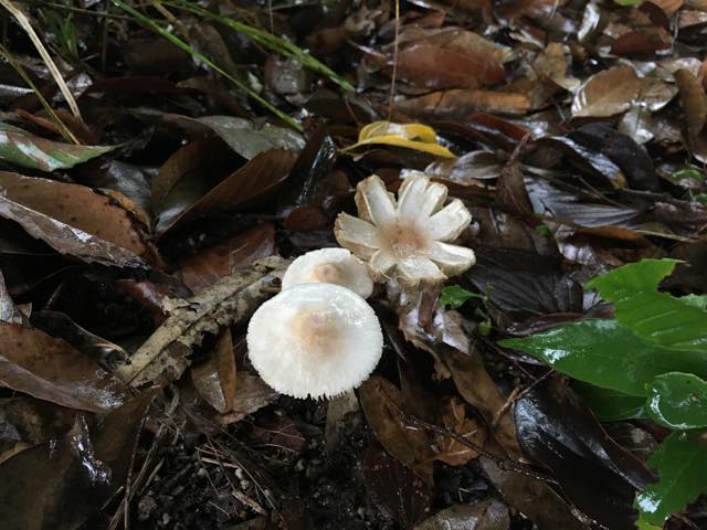 家で某週刊誌の電話取材を受けた後、夕方からの学生主催行事に出るために向かった大学。その途中に時々きのこ。