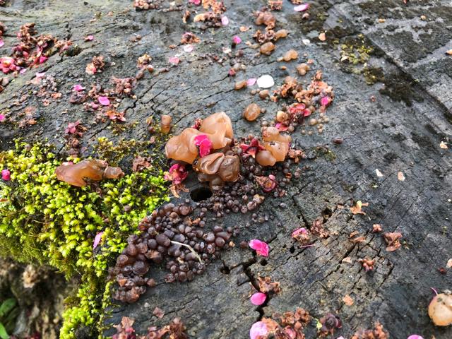 雨上がりの北野天満宮。キクラゲやアラゲキクラゲが元気になっていた。