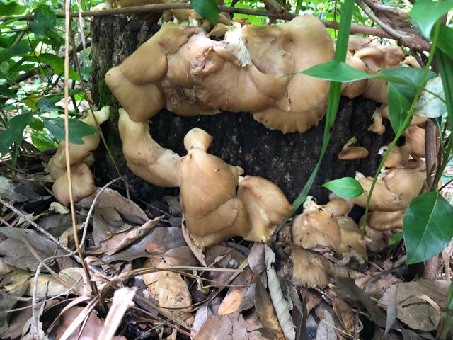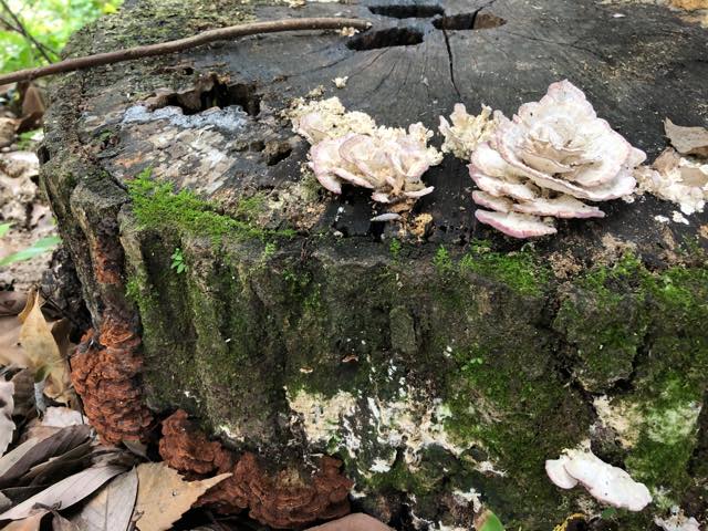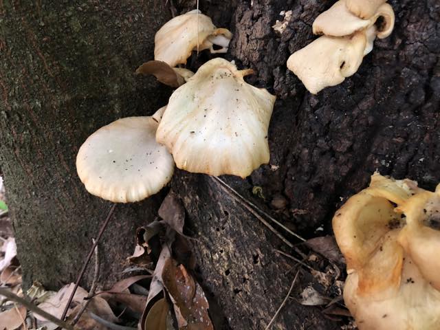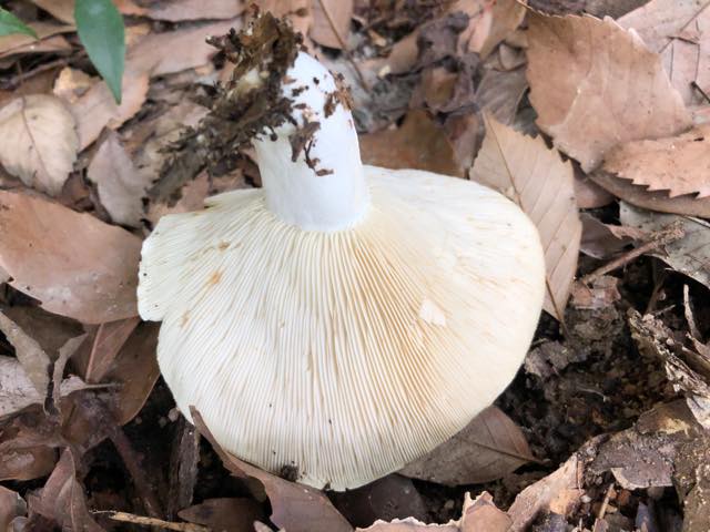 2週間ぶりの衣笠キャンパス。定点観察地点を周ってみると、ウスヒラタケとシロハツ系のきのこが沢山出ていた。