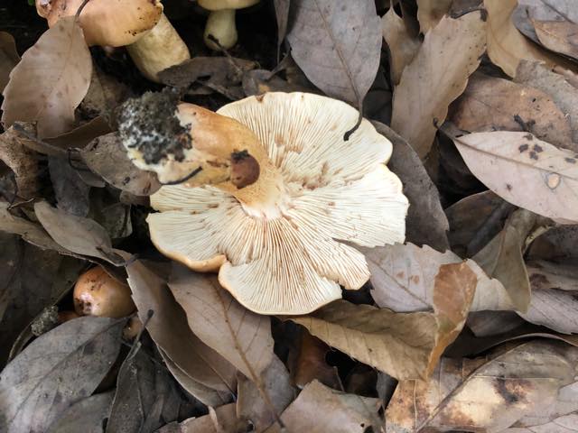 雨が降る前の定点観察。カワムラフウセンタケが今日の収穫かな。