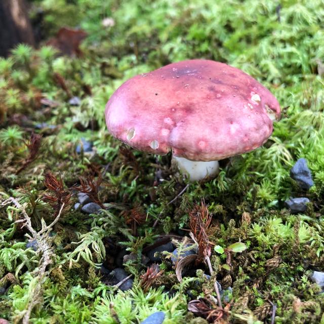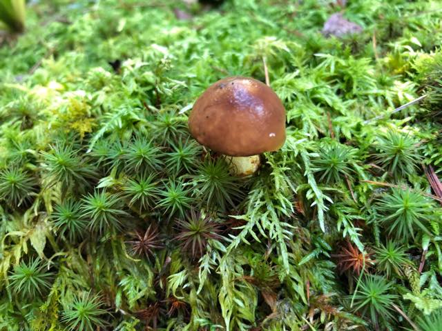 長女を連れて訪れた知恩院。手入れされた庭の苔のなかにいろいろなきのこが顔を出していた。