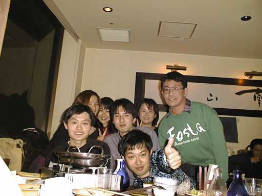 2001年2月22日に行われた追い出しコンパの風景です。「949」という京急デパート上大岡10階の串焼き屋さんで行いました。